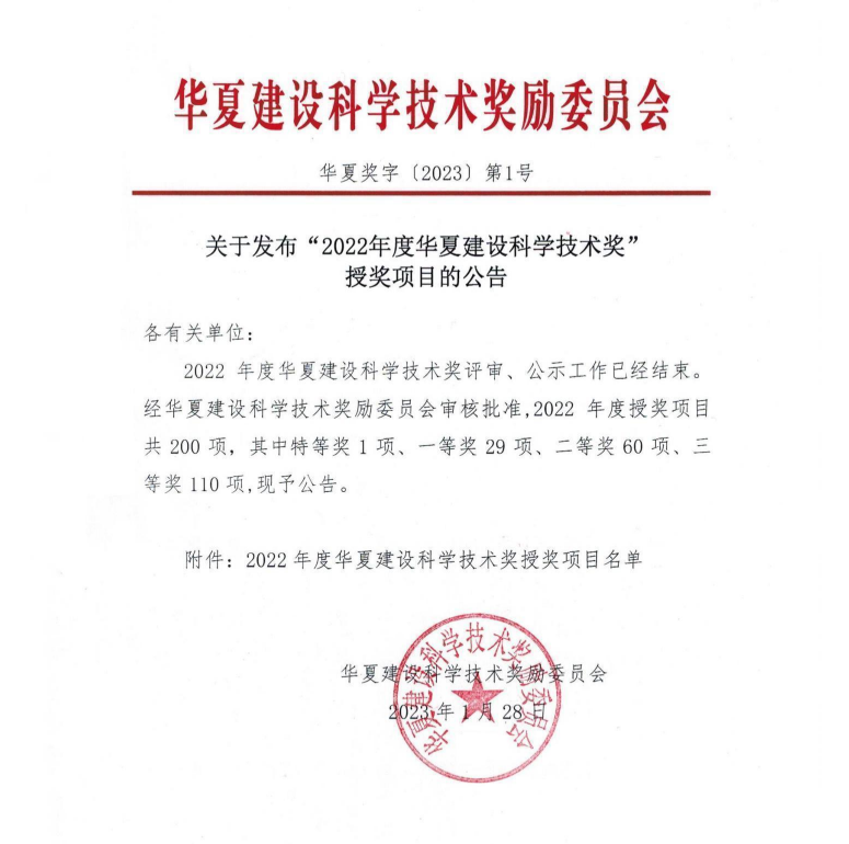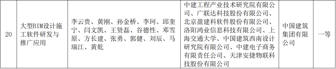 日前,课题成果——大型BIM设计施工软件研发与推广应用获得了2022年度华夏建设科学技术奖一等奖,奖项由天津开元体育物联科技股份有限公司、中建工程产业技术研究院有限公司、广联达科技股份有限公司、北京盈建科软件股份有限公司等单位联合申报。